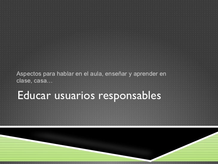 - 8. Educar usuarios responsables <ul><li>Aspectos para hablar en el aula, enseñar y aprender en clase, casa… </li></ul>